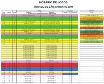 Torneio de São Martinho/Quadro de Jogos